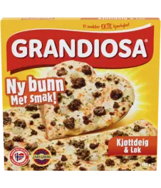 hvetemel, ost 22% (Jarlsberg, mozzarella), vann,pepperonipølse 9 % (storfekjøtt, vann, potetmel, krydder,krydderekstrakt, salt, hvetefiber, sukker, druesukker, fargestoff(paprikaekstrakt), antioksidant (natriumaskorbat), stabilisator(difosfat, trifosfat), konserveringsmiddel(natriumnitritt)), tomatpuré, gjær, rapsolje, sukker, krydder, sukker,salt.Kan inneholde spor av soya,,